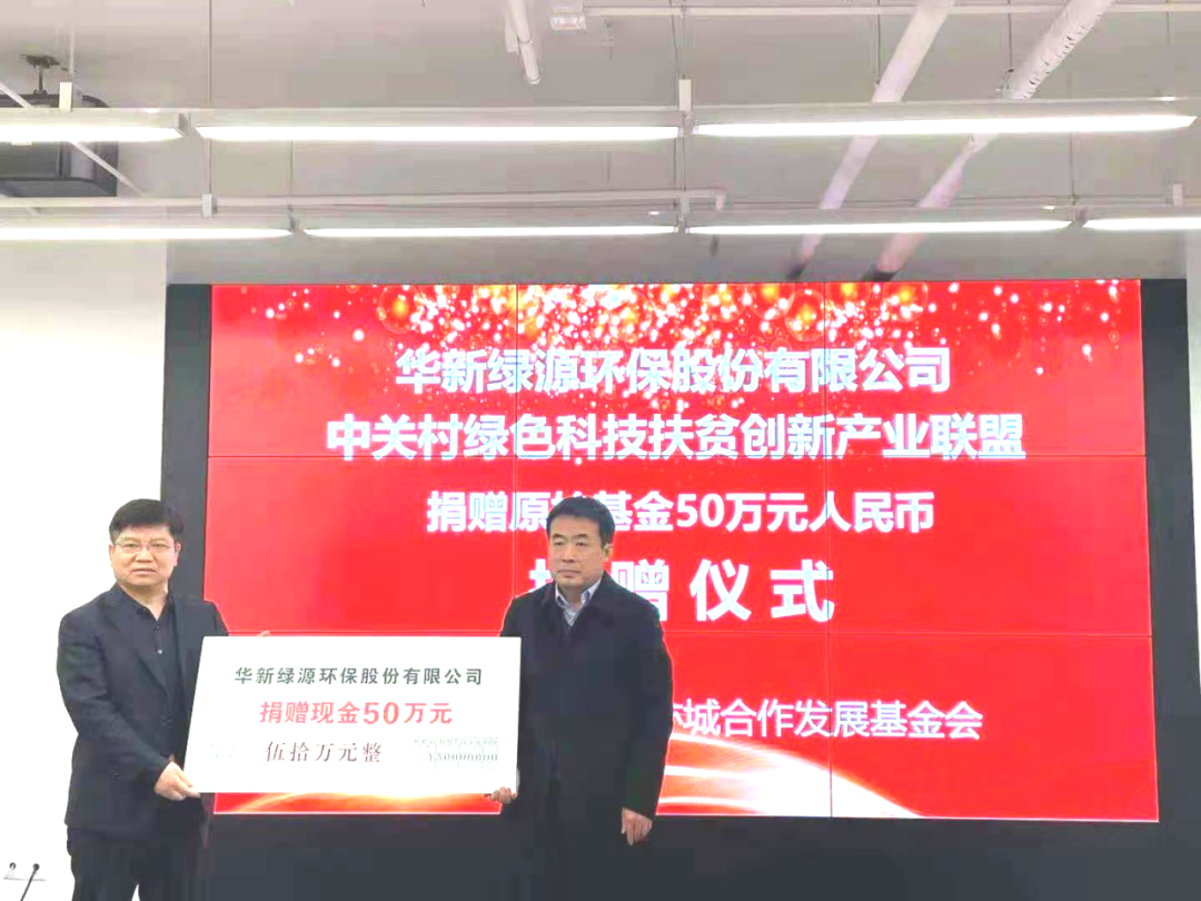2021年3月18日下午,北京亦城合作發(fā)展基金會扶貧濟困專項基金管理委員會(以下簡稱“扶貧濟困專委會”)授牌儀式暨中關村綠色科技扶貧創(chuàng)新產(chǎn)業(yè)聯(lián)盟、華新綠源環(huán)保股份有限公司捐贈儀式,在北京經(jīng)開區(qū)OBE科技園區(qū)舉行。