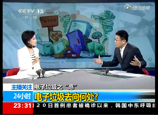 2015年6月21日,中央電視臺新聞頻道播出“電子垃圾去向何處”的采訪報道,就電子垃圾的現(xiàn)狀危害及正確的處理方式,華新環(huán)??偨?jīng)理王建明及子公司香蕉皮副總經(jīng)理肖賢飛等,接受了采訪。